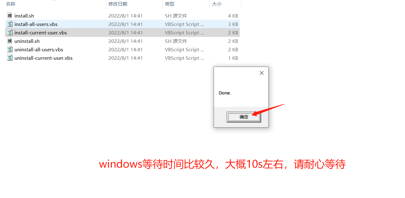 然后再执行install-current-user.vbs,直接双击打开即可